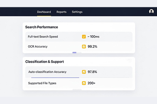 Efficient Search and Classification for Manufacturing Data Powerful search capabilities allow for quick retrieval of production, inventory, and shipment data, with intelligent tagging and OCR for scanned documents.